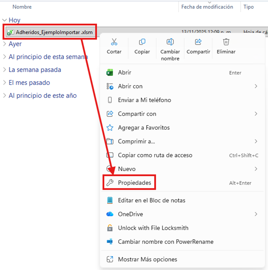 1. Para ello, debes dar clic derecho en el archivo que SEC te proporcionó, y del menú contextual elegir “Propiedades”.