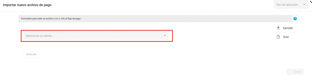 Selecciona el cliente correspondiente en el campo “Selecciona un cliente”.