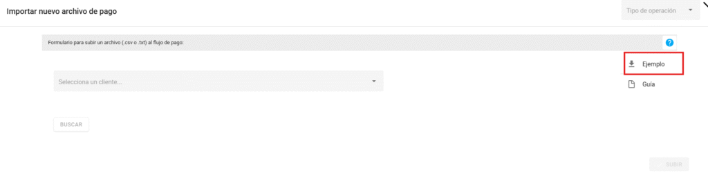 Una vez seleccionado el cliente, descarga el archivo de ejemplo